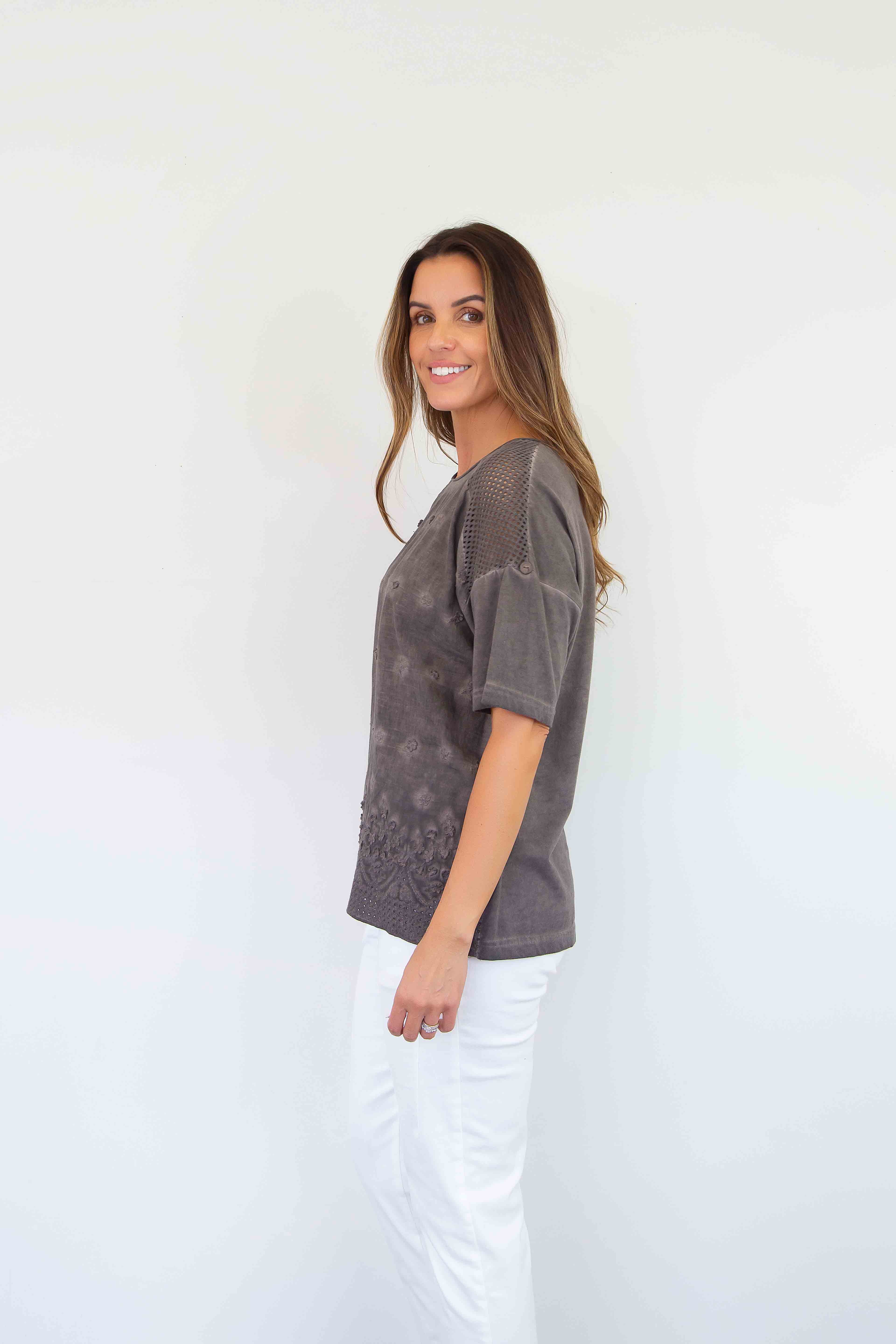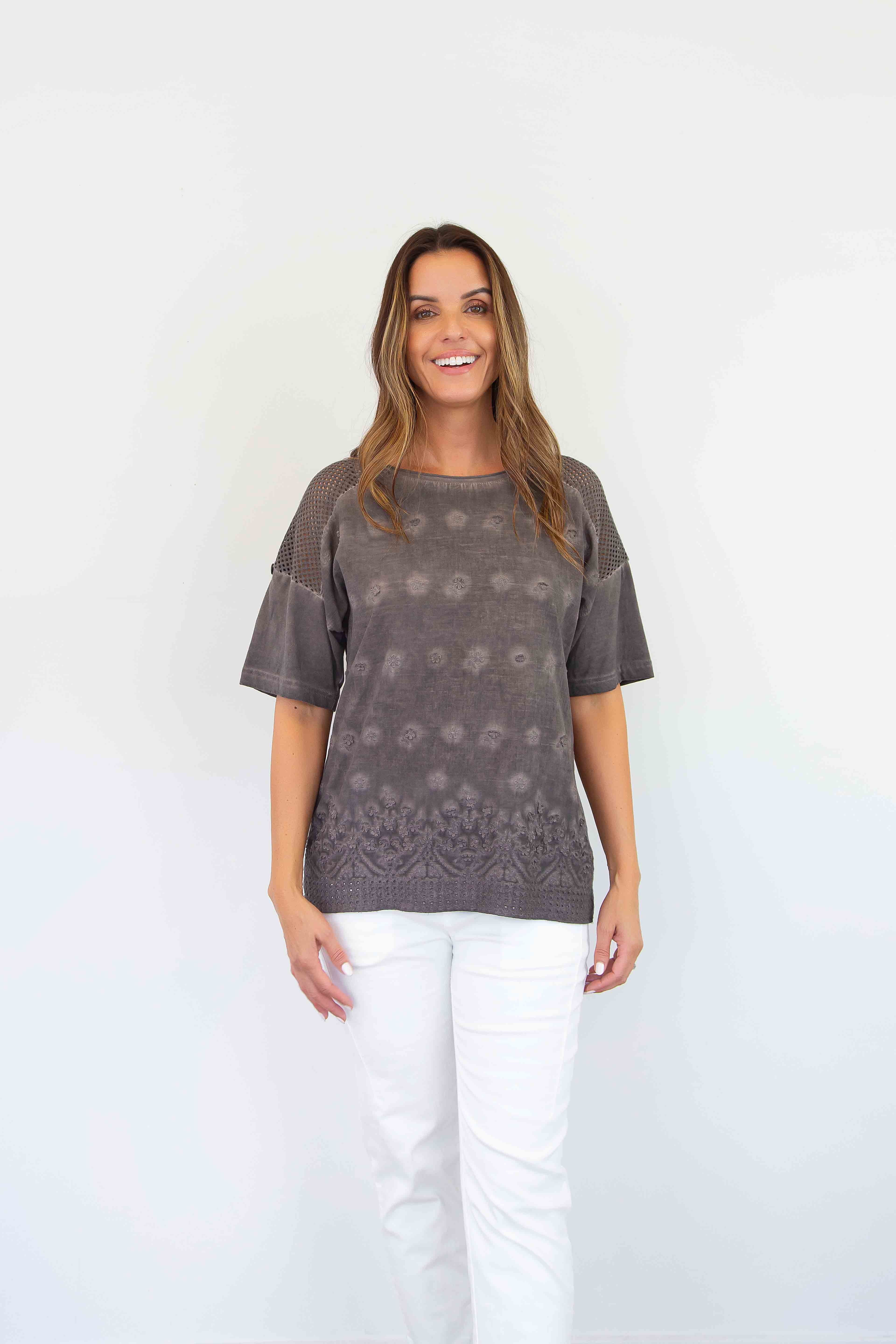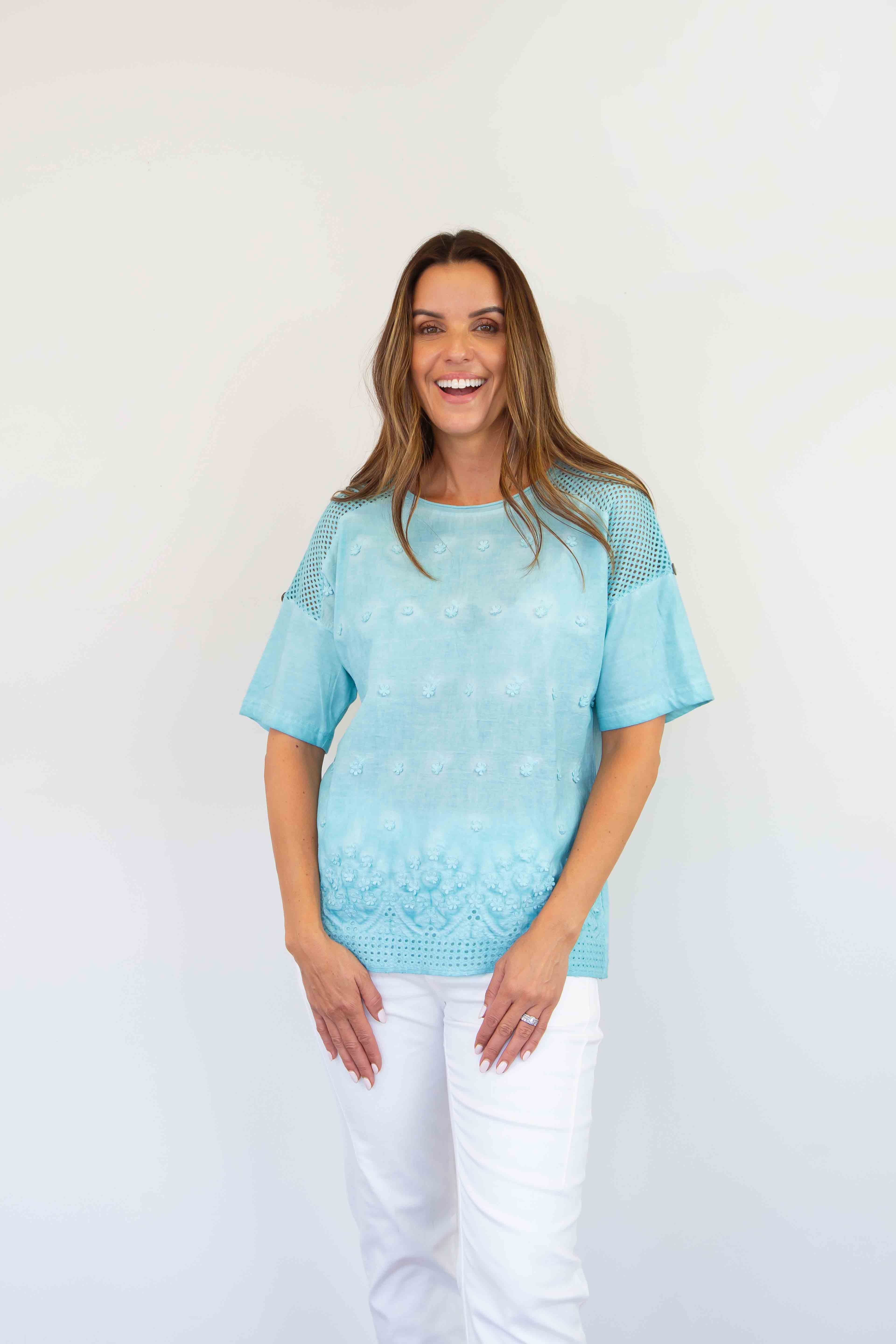 FairyTern Floral Embroidered Short Sleeve Top